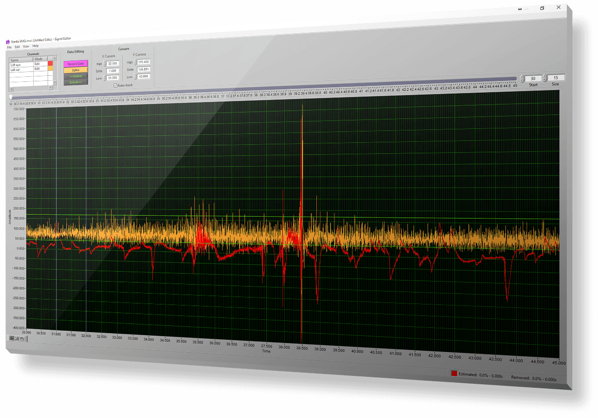- Comprehensive graphical data editor allows you to remove noise and isolate the EMG response
