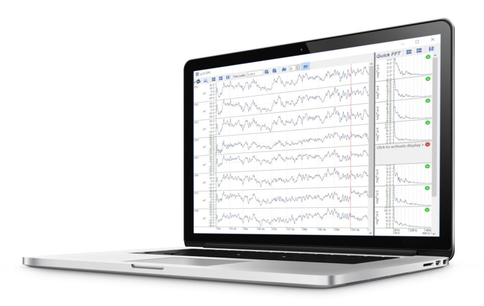 - Selection of sampling frequencies up to 38.4kHz, recording channels, bandpass and Notch filters