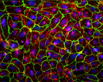 Immunofluorescence of Human Umbilical Vein Endothelial Cells (HUVEC) in a µ-Slide 4 Well