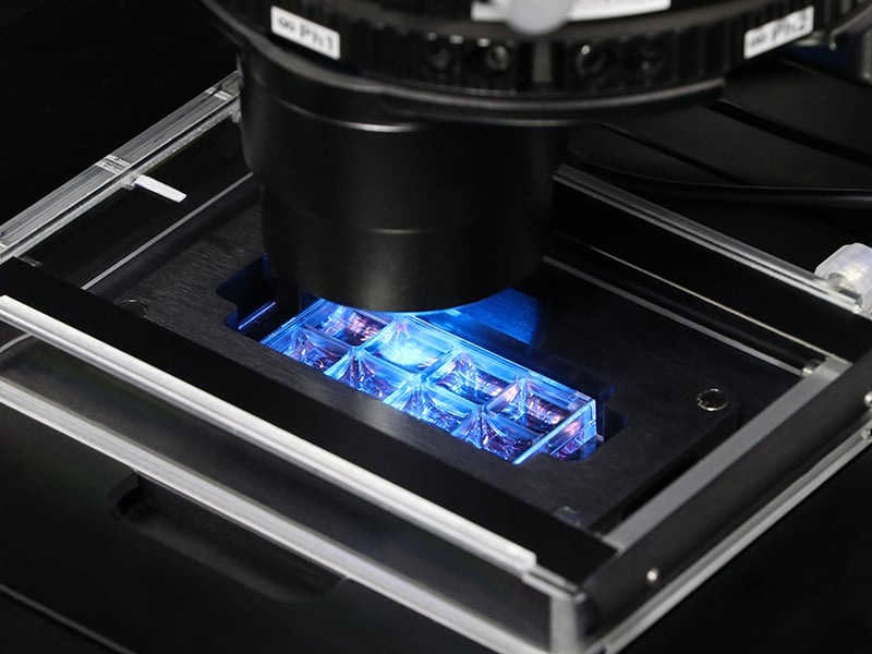 Live cell imaging in a µ-Slide 8 Well using transmitted light.